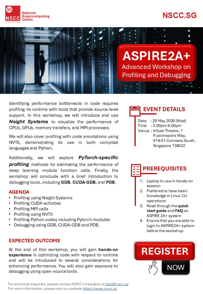 The National Supercomputing Centre (NSCC) Singapore is a state-of-the-art national facility with petascale-standard computing resource to support high performance scientific and engineering computing needs in Singapore.